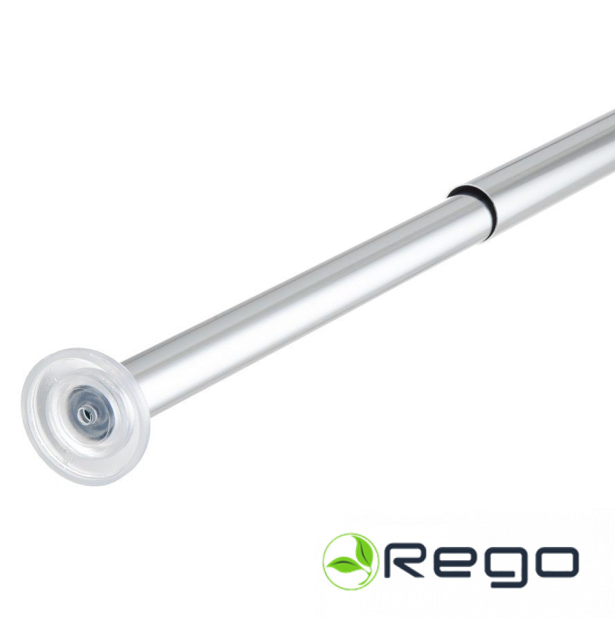 Hroma krāsas dušas aizkara stienis,regulējams garums no 125 līdz 220 cmAtsperes mehānisms ļauj stieni nospriegot vietābez skrūvēm vai urbšanasStieņa diametrs 20 mmMateriāls: hromēts alumīnijs