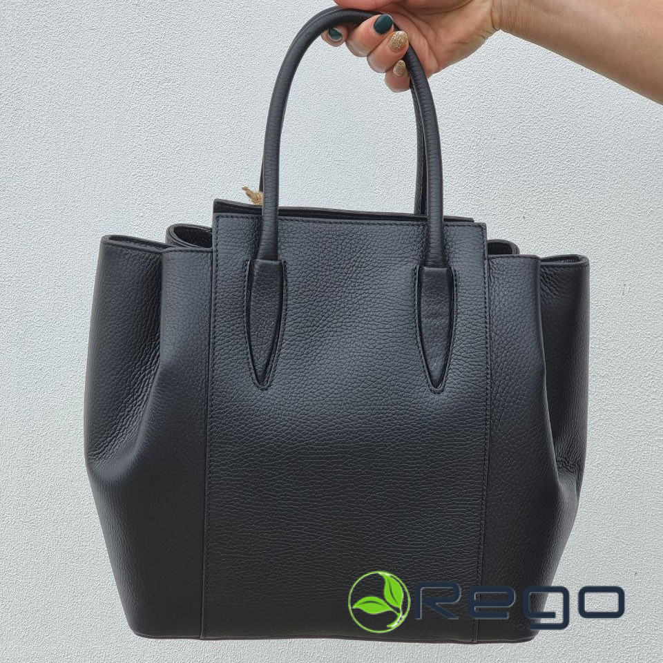 Ādas soma sieviešu melna ar volānu malām