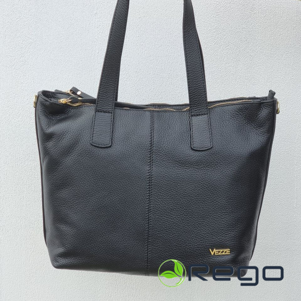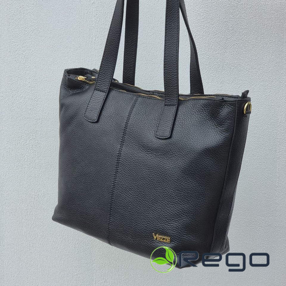 Ādas soma sieviešu melna XL ar zelta rāvējslēdzēju