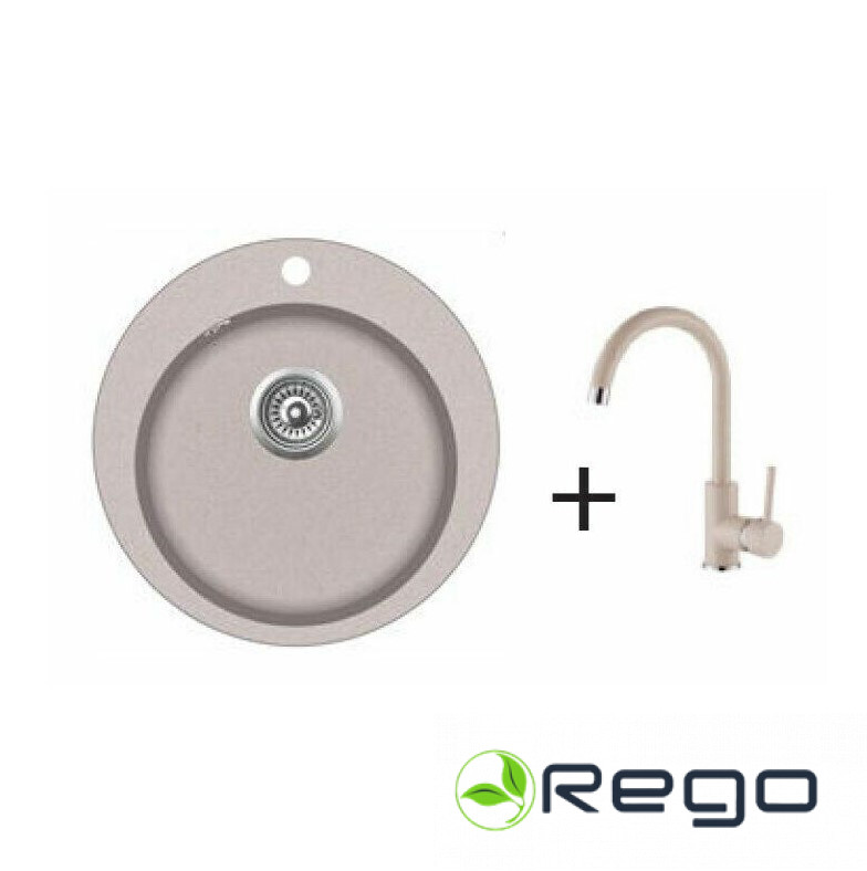 AQUASANITA Granīta izlietne 505×505 BEIGE +Virtuves maisītājs 5523 Beige (21747)