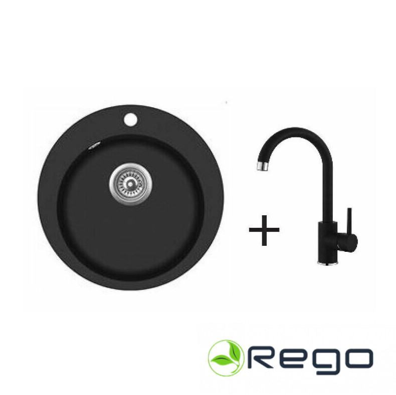 AQUASANITA Granīta izlietne 505×505 BLACK + Virtuves maisītājs 5523 Black Metali
