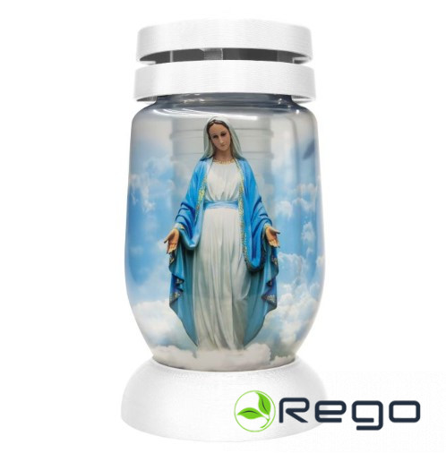 Āra svece ar vāciņu 21cm Dievmāte stikla zila