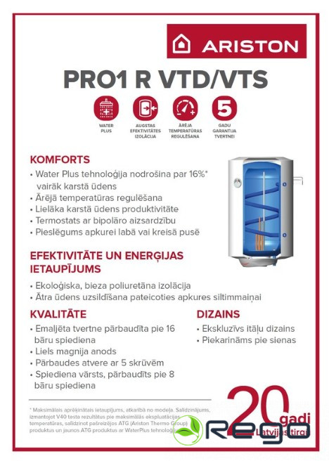 Kombinētais ūdens sildītājs Ariston PRO1 R 100VTS,
