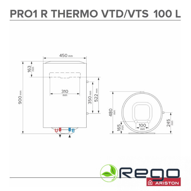 Ariston Kombinētais ūdens sildītājs PRO R EVO 100l, vertikāls (11027)