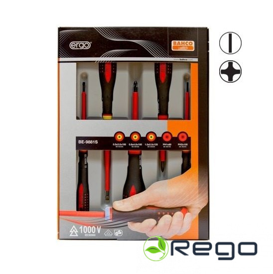 Elektriķu skrūvgriežu komplekts ERGO 6 gab –PH1/2; SL3,5/4,0/5,5/6,0 – 1000V VDE