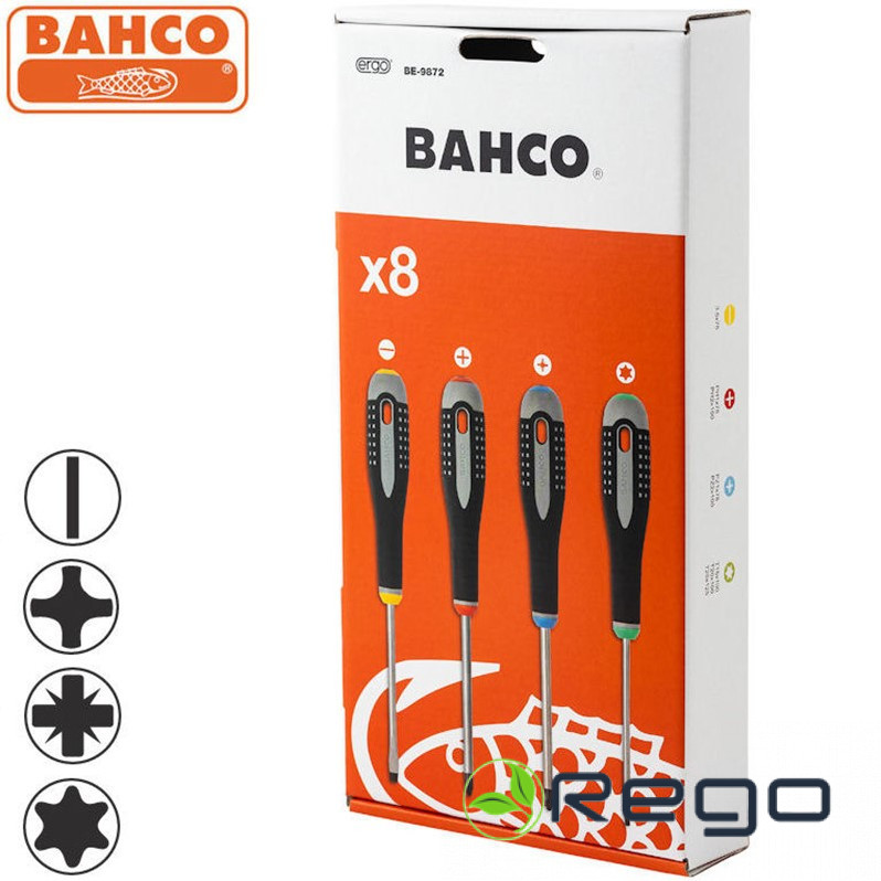 Bahco Skrūvgriežu komplekts ERGO 8 gab –PH1/2; PZ1/2; SL3,5,T15/20/25