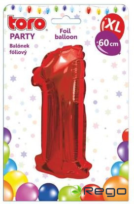 Balons cipars 1, 60cm, flojas, sarkans
