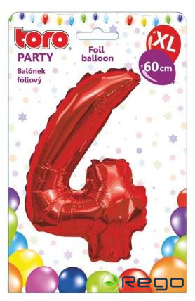 Balons cipars 4, 60cm, folijas, sarkans