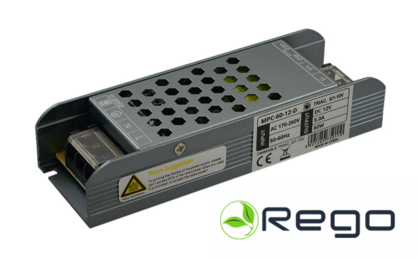 Barošanas bloks SLIM LED 60W 5A 12V, IP20 metāla