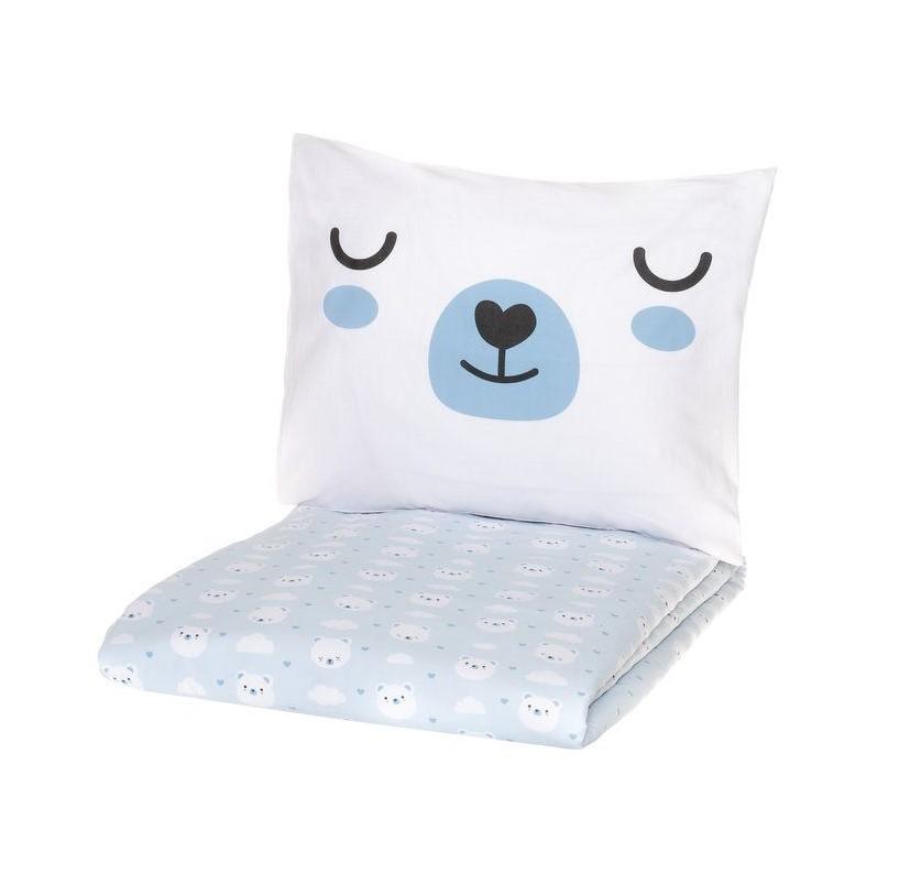 Segas pārvalka komplekts ar lāču dizainu,komplektā ietilpst segas pārvalks 150 x 210 cm unspilvendrāna 50 x 60 cmMateriāls 100% kokvilnaMazgāt 60 grādos