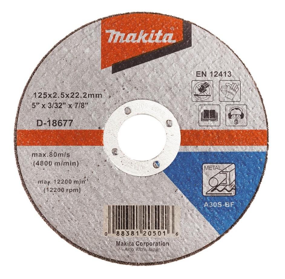 Makita Griezripa 125 X 2,5 A30S Tērauds (D-18677)Diametrs (D) 125 mmBiezums: 2,5 mmAtveres lielums (vārpstas diametrs) 22,23 mmGab. 1Grauds: A30STips: 41