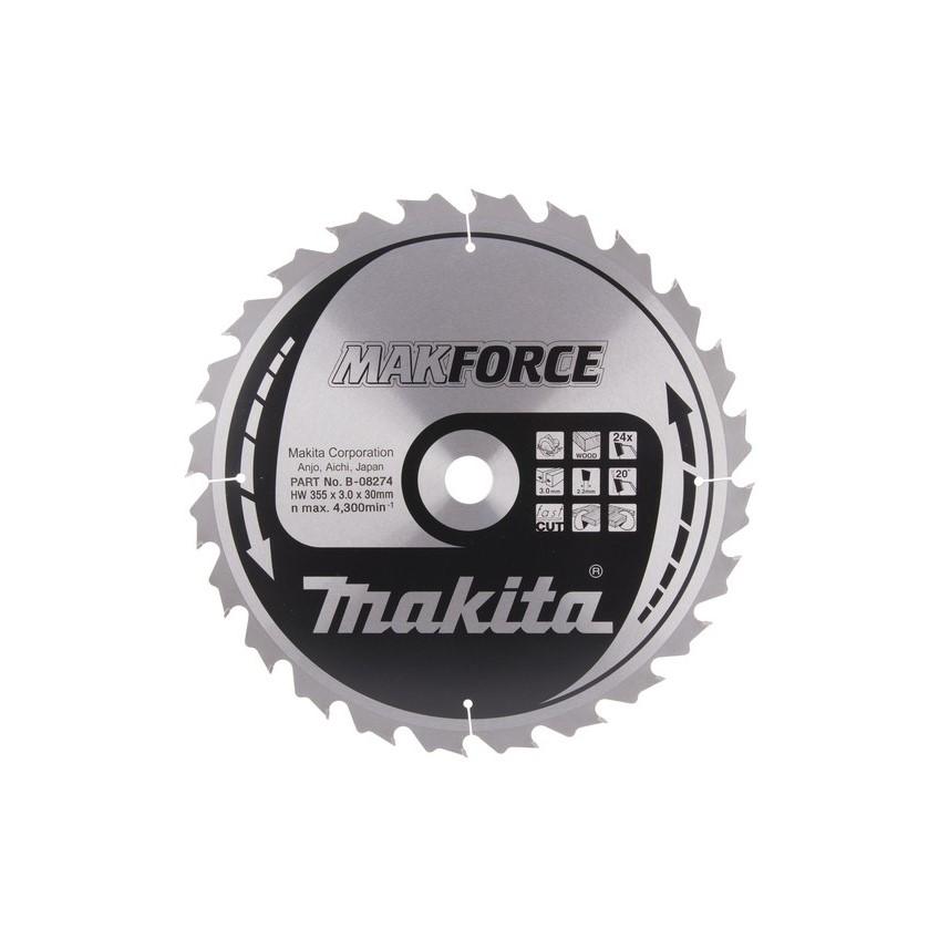 Asmens diametrs: 355 mmAtveres lielums vārpstas diametrs: 30 mmZoba platums griezuma platums: 3,0 mmZobu daudzums: 24grābšanas leņķis: 20°Zāģripas veids: Makforce