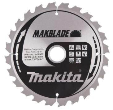 Asmens diametrs: 216 mmZoba platums (griezuma platums): 2,4 mmZobu daudzums: 24Atveres lielums (vārpstas diametrs): 30 mmGrābšanas leņķis: 5°Zāģripas veids: Makblade