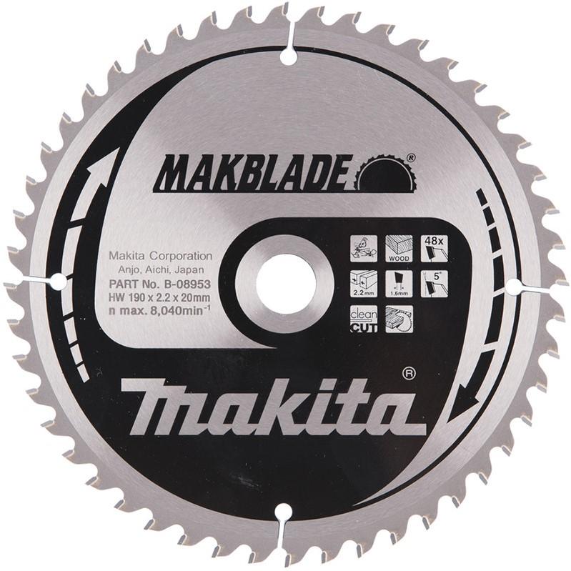 Asmens diametrs: 190 mmAtveres lielums (vārpstas diametrs): 20 mmZoba platums (griezuma platums): 2,2 mmZobu daudzums: 48Grābšanas leņķis: 5°Zāģripas veids: Makblade
