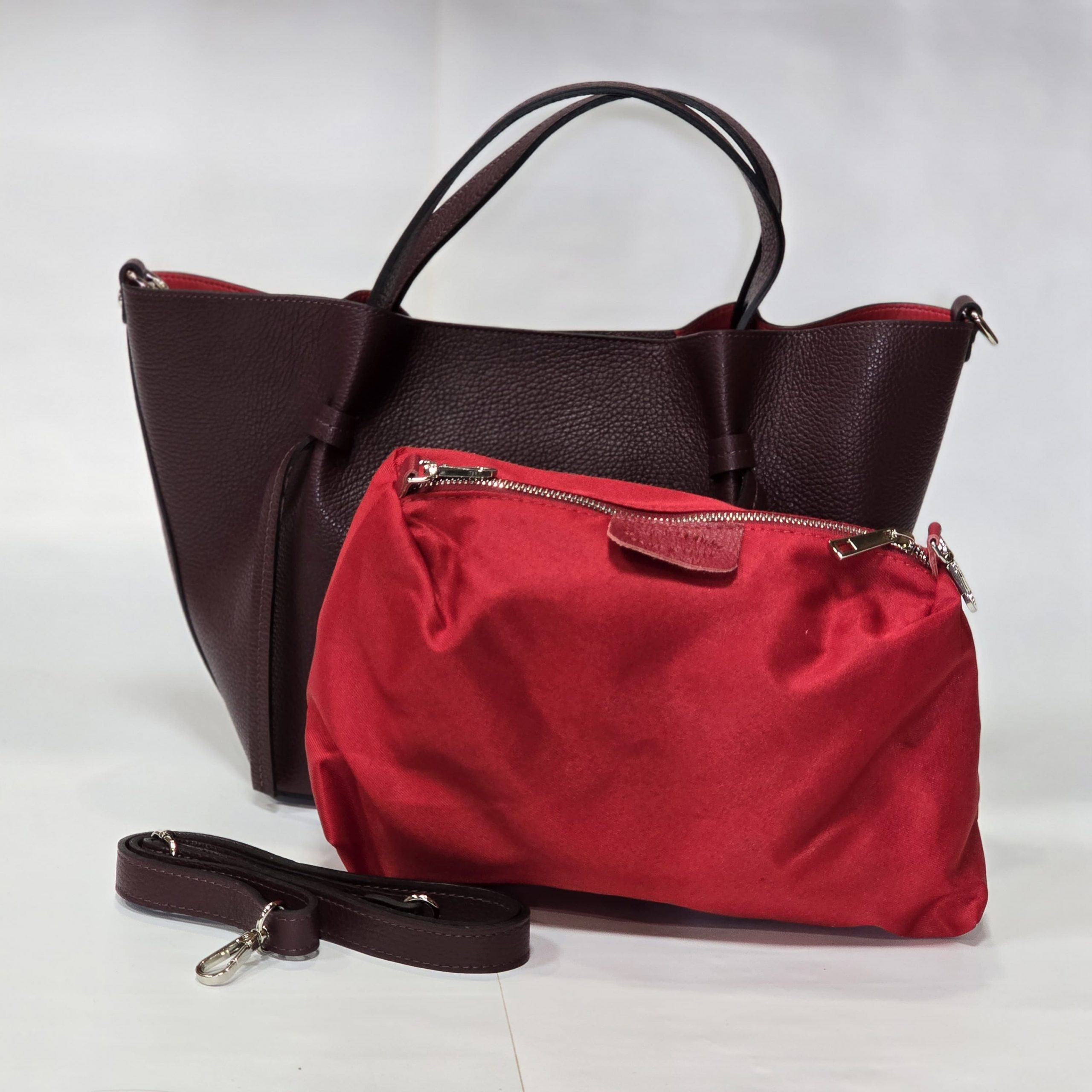 Dabīgās ādas soma bordo ar maciņu