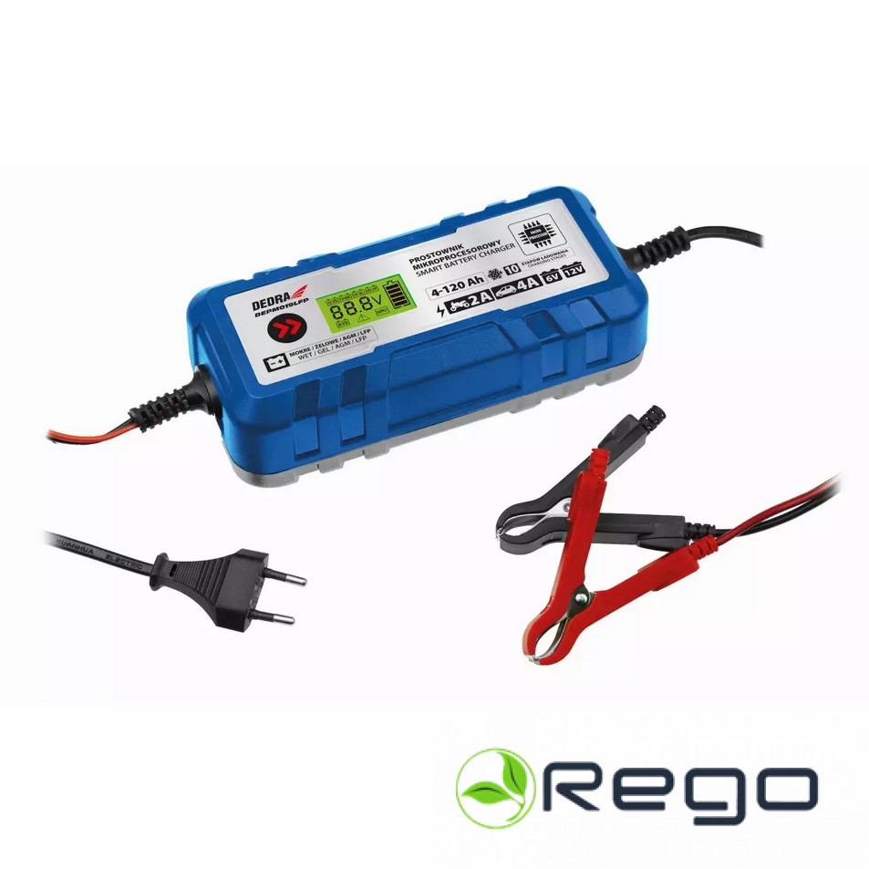 Uzlādes spriegums un strāvas stiprums: 6V-2A, 12V-4A, 12V-4A