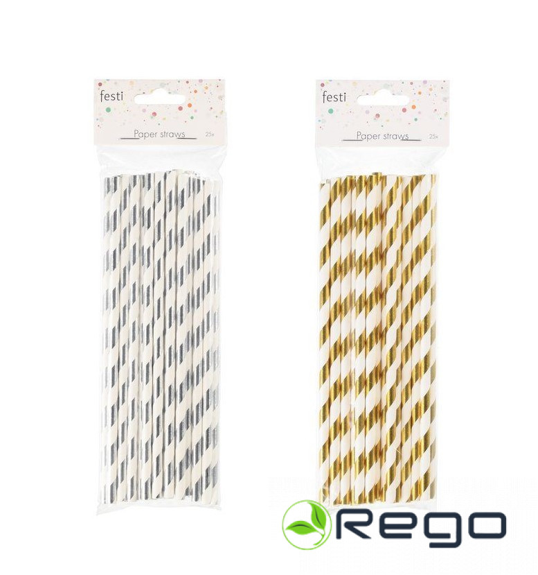 Festi papīra salmiņi metāliskās krāsās 25gab daudzums