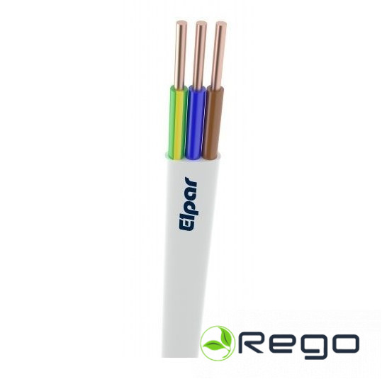 Kabelis YDYp 3×2.5mm. Balts, monolīts, plakans (100m)