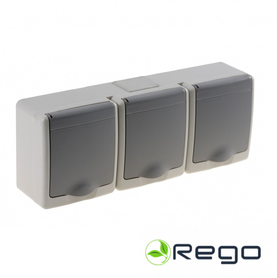 Kontaktligzda 3-v v/a ar zem. pelēka IP44 BETA