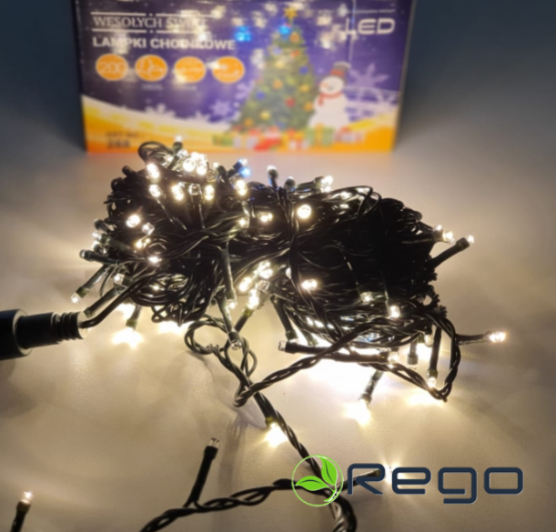 LED gaismiņu virtene silti balta, 200LED, 15m daudzums