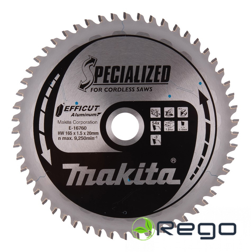 Asmens diametrs: 165 mmAtveres lielums (vārpstas diametrs) 20 mmZoba platums (griezuma platums) 1,5 mmZobu daudzums: 54grābšanas leņķis: -3°Zāģripas veids: EfficutGab. 1