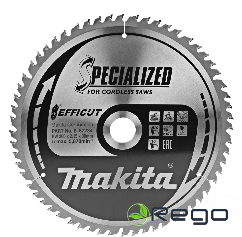 Makita Zāģripa EFFICUT 260X2.15X30mm 10° T60 T.C.T. (B-67234)