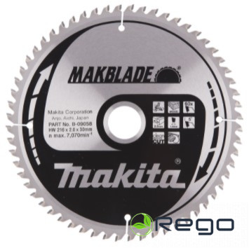 Asmens diametrs: 216 mmZoba platums (griezuma platums): 2,0 mmZobu daudzums: 60Atveres lielums (vārpstas diametrs): 30 mmGrābšanas leņķis: 5°Zāģripas veids: Makblade