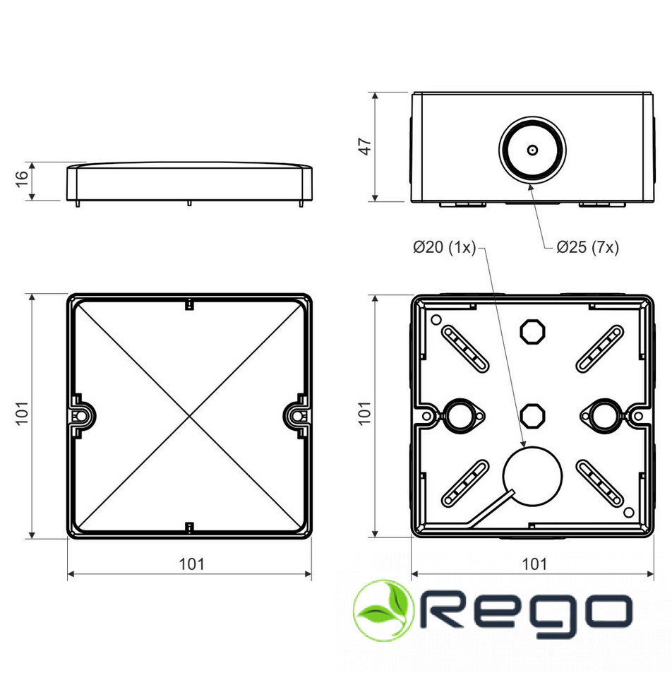 Nozarkārba v/a 101x101x47mm melna ar vāku UV IP66 KSK 100 FA