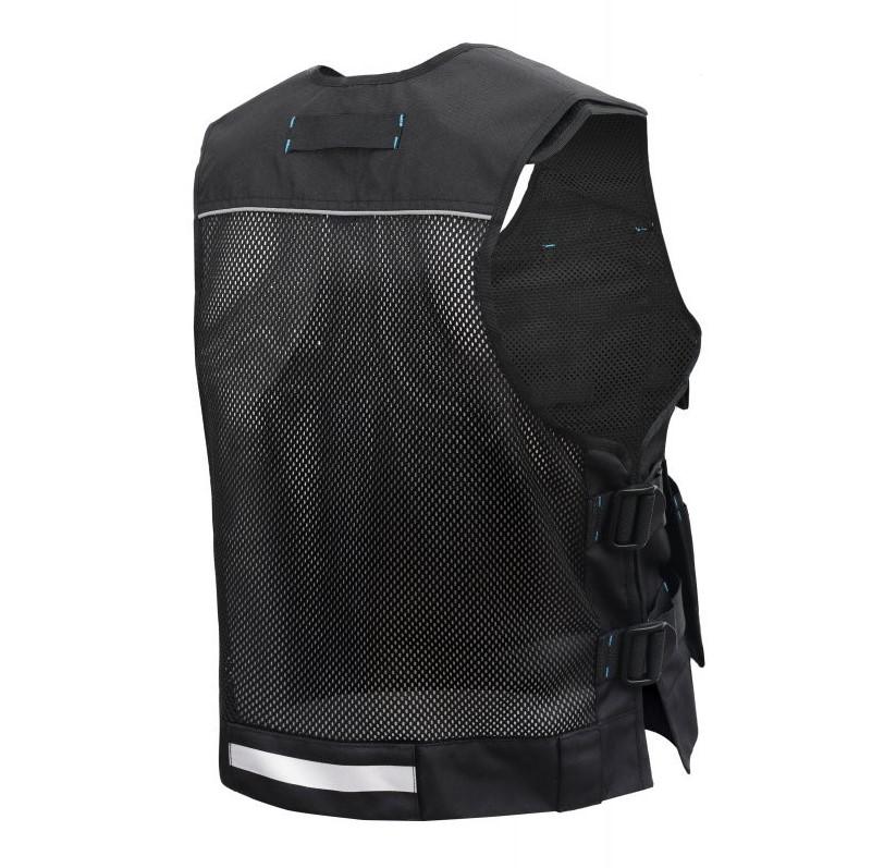 Materiāls: audums 100% poliesters OXFORD 600D;Svars: 220 g/m²;rāvējslēdzēja priekšējā aizdare;D-gredzens identifikācijas zīmes piek hanging;atstarojošie elementi priekšā un aizmugurē;regulēšana un pielāgošana ar sānu siksnām;kabatas:2 Velcro kabatas telefoniem12 atvērtas kabatas1 rāvējslēdzēja kabata