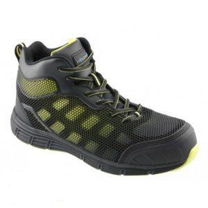 S1P drošības kategorija. Purngalā iestrādātsmetāls pirkstu aizsardzībai(triecienizturība līdz 200 džouliem).Pretslīdes materiāls SRC.Apavi izgatavoti no nubuka.Iekšējais materiāls EVA novērš berzi.
