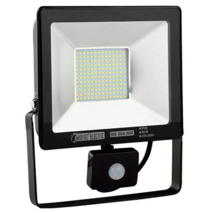 Prožektors, LED, Horoz, ASLAN, 50W, 5500lm, 6400K, IP65, melns, ar PIR sensoru
