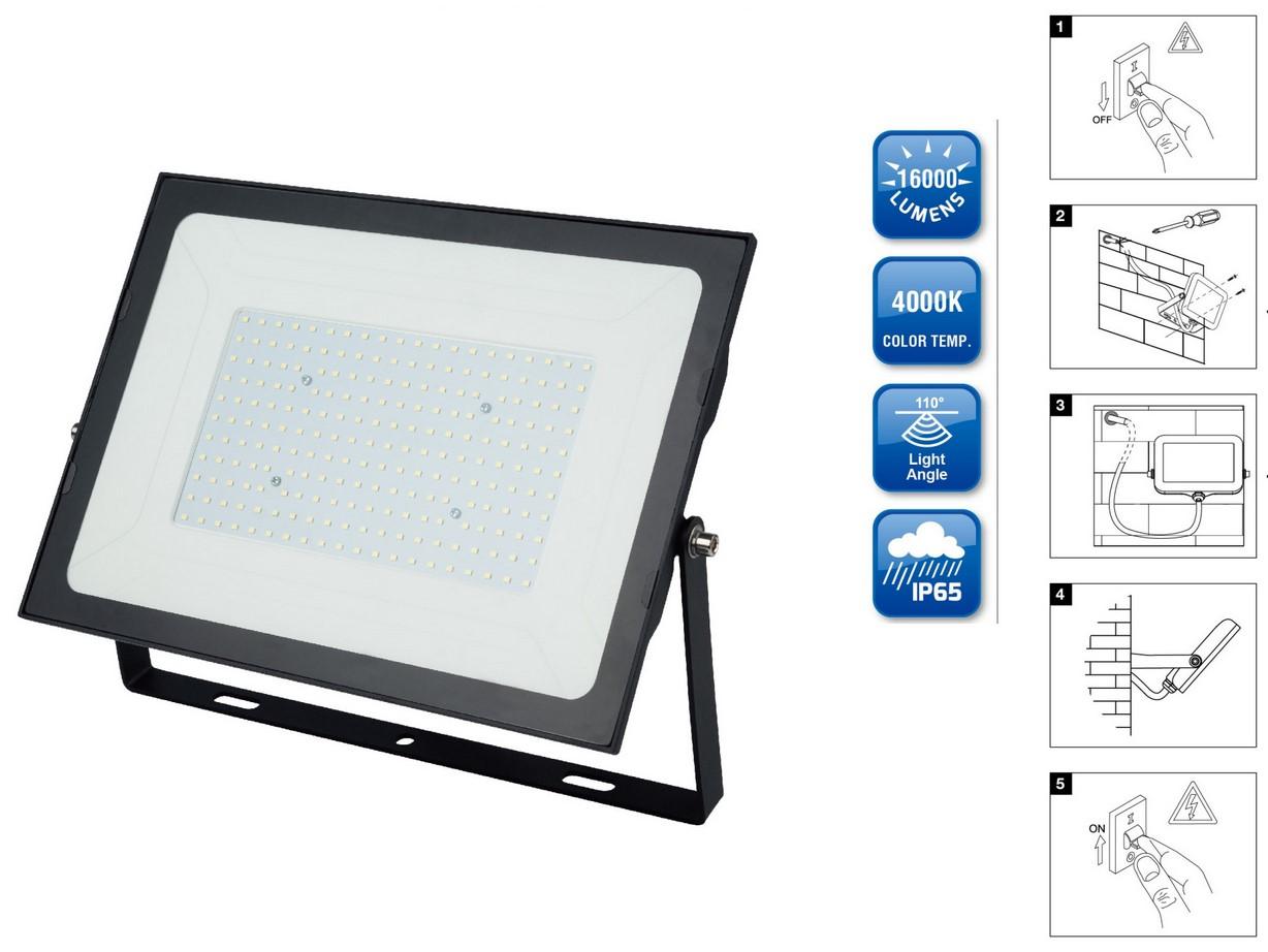 LED prožektors 200W,16500lm, ar 15cm 3G1.0mm² vadu (17136S)
