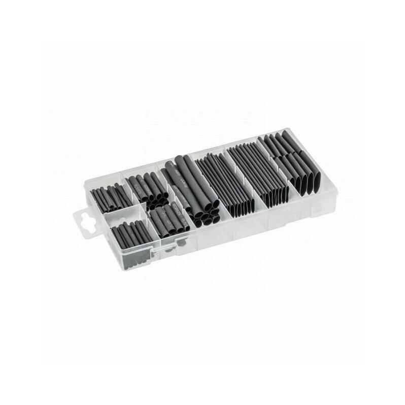 Termumā saraušanās caurules drošaiun drošai elektrisko savienojumu izolācijai.Specifikācijas:– izgatavots no polietilēna;– saraušanās temperatūra 125°C;– samazinājuma līmenis 50% apmērā;– maksimālā izolācija. 600V;– Iepakots ērtā kastē ar nodalījumiem.Iekļauta termiski saraušanās cauruleIzmērs Daudzums2,0 x 40 mm 30 gab.2,5 x 40 mm 25 gab.3,5 x 40 mm 20 gab.5,0 x 40 mm 20 gab.7,0 x 80 mm 16 gab.10…