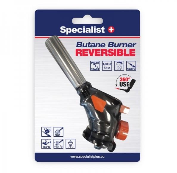 Specialist+ 360 ° leņķī grozāms universāls deglisar automātisku aizdedzināšanasfunkciju un liesmas regulatoru.Pjezoelektriska iededzināšana ar vienu pogas spiedienu.Degšanas temperatūra līdz 1300 °C.Jauda 1,03kW. Gāzes patēriņš 73 g/h.Komplektēts ar Specialist+ butāna gāzi.