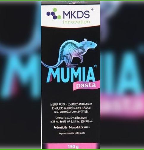 Pasta peļu, žurku iznīcināšanai.Aktīvā viela difenakums 0.0025%.Novietot ēsmu maksimāli tuvu vietām,kur novērota grauzēju aktivitāte –pie ejām, perēkļiem, barošanās vietām,spraugām vai alām.