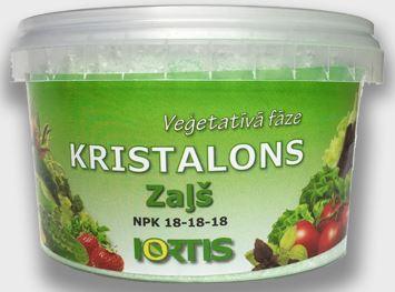 KRISTALONS zaļš – ūdenī šķīstošs kompleksais minerālmēsloju˙ms, kas nodrošina augam nepieciešamās barības vielasveģetācijas fāzē. Sekmē augu optimālu augšanu un attīstību ˙visas sezonas garumā, uzlabo auga imūnsistēmu, veicina auguizturību mainīgos laika apstākļos. Izmantojams dārzkopībai,˙augu mēslošanai- dārzeņiem, puķēm un dekoratīvajiem augiemsegtās platībās un atklātā laukā.