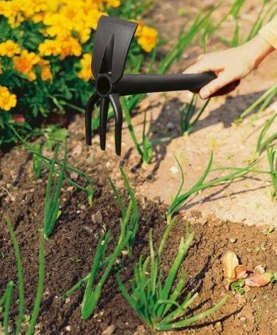 Izturīgs, neslīdošs, var asināt.Praktisks darbam šaurās dobēs un podos.Kāta galā ir caurums ērtai glabāšanai.