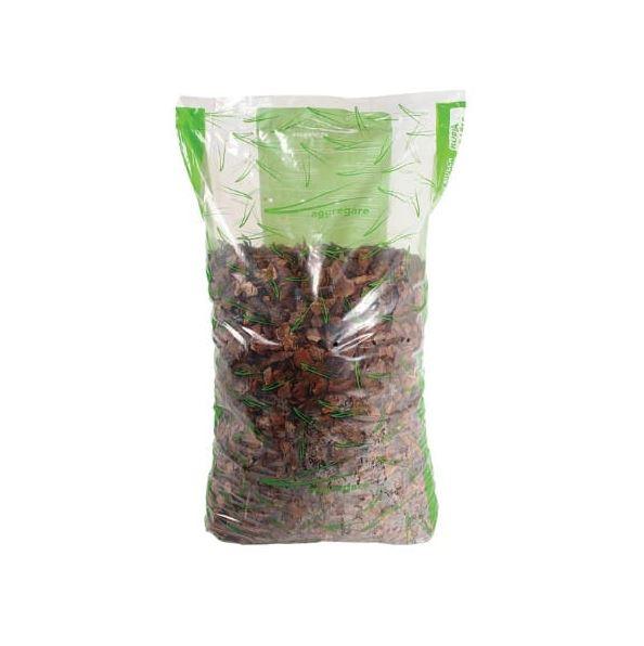 Rupjā mulča (30–50mm) Pēc priežu mizas samalšanasapmēram 10% maluma veido šie dekoratīvie,smaržīgie 30–50 mm lielie priežu mizas gabali.To lieto augsnes virskārtas nosegšanai ap augiem dobēs,kā arī celiņu, spēļu laukumu un taku segumiem.