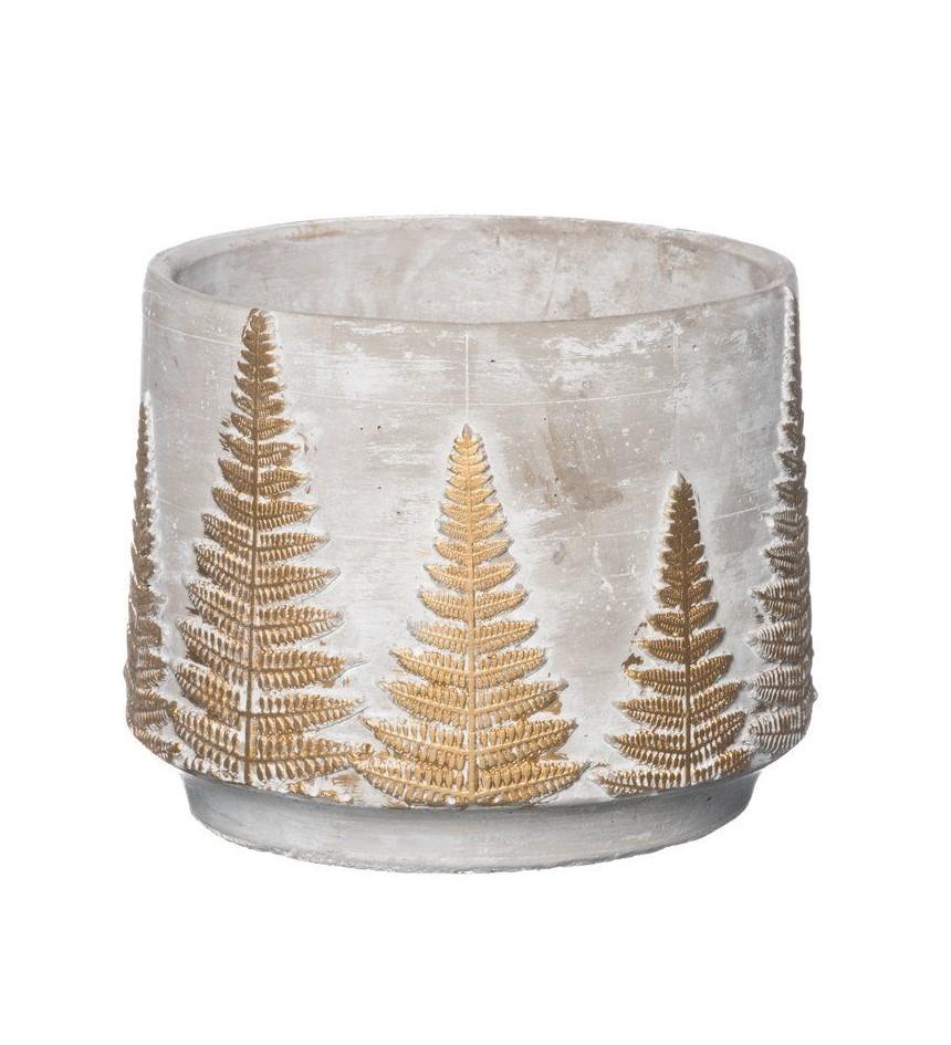 Dabiski baltais cementa pods ir dekorēts arzelta krāsas papardēmPodu var izmantot, lai aizsargātu augu,kas iestādīts plastmasas podā17,5cm