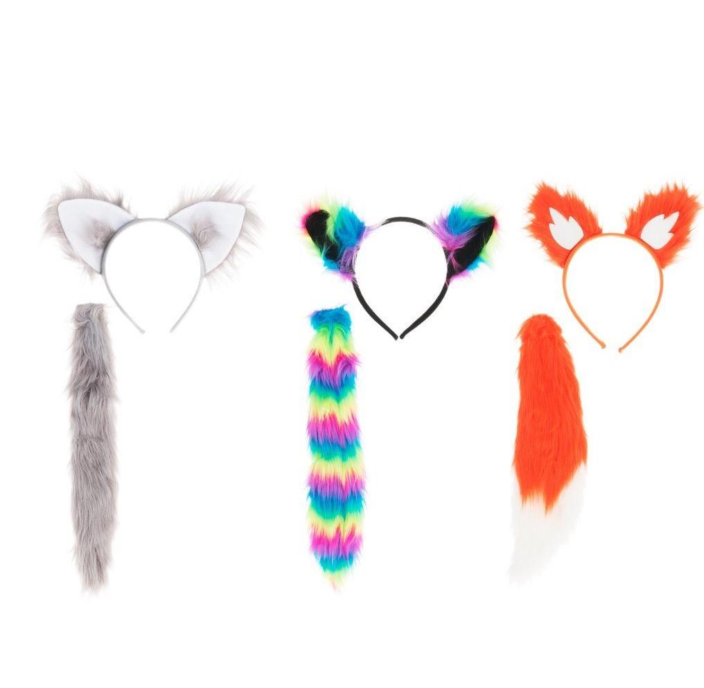 Festi matu lociņš ar ausīm un aste- komplekts maska3 dažādi veidi- pelēks, oranžs, krāsains
