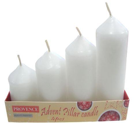 ProvenceAdventes sveces/ baltasSveču izmēri: Ø4×6.5;8.5;10;12cmKomplektā: 4 dažāda izmēra svecesKomplekta izmērs:17x12x4cm