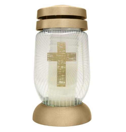Āra svece ar vāciņu 21cm stikla zelta ar krustu