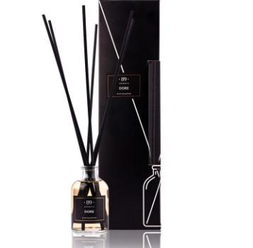Mājām paredzētas smaržas ar kociņiemSmarža: Dore (Elite)Tilpums: 50ml / 1.69fl. oz.Efektivitāte: līdz 40 m2 / 430 sq. ftun ilgst līdz 90 dienāmNiedres: Šķiedra, melna, 6 gab., 25 cm / 9,84 collasIzmēri: platums 4 cm x augstums 7 cmAugšējās notis: karamele, apelsīns, melone, laims,rūgtais apelsīns, zaļās lapas un greipfrūts.Sirds notis: vijolītes, roze un lavanda.Pamata notis: baltais…