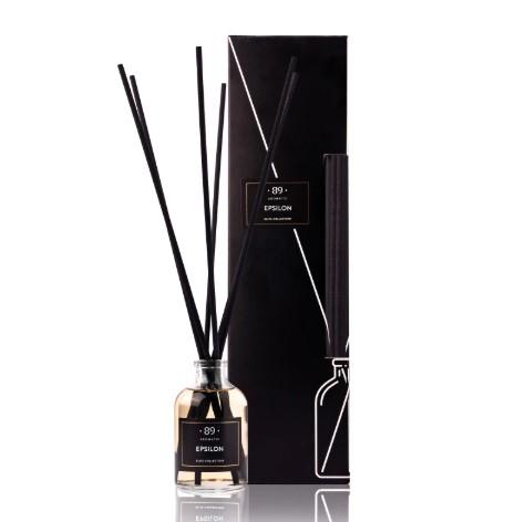 Smarža Epsilon (Maigs Austrumniecisks)Tilpums 50 ml / 1.69fl. oz.Efektivitāte līdz 40 m2 / 430 sq. ft un ilgst līdz 90 dienāmNiedres Šķiedra, melna, 6 gab., 25 cm / 9,84 collasIzmēri platums 4 cm x augstums 7 cmAugšējās notis laims, avenes, citrons un rabarberi.Sirds notis jasmīns, roze, vijolītes un ciklamenas.Pamata notis dzintara muskuss, vaniļa,baltais muskuss, tabaka…