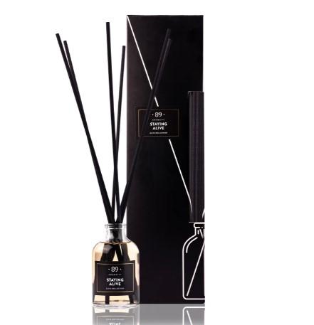 Smarža Staying Alive (Citrusu-Kokains)Tilpums 50 ml / 1.69fl. oz.Efektivitāte līdz 40 m2 / 430 sq. ft un ilgst līdz 90 dienāmNiedres Šķiedra, melna, 6 gab., 25 cm / 9,84 collasIzmēri platums 4 cm x augstums 7 cmAugšējās notis citrons, ābols, mandarīnsSirds notis jasmīns, sandalkoksPamata notis vetivērija, ciedrs, vaniļa, dzintars