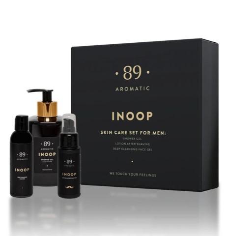 Smarža Inoop (Maigs Austrumniecisks)Augšējās notis plūme, bergamote.Sirds notis ābols, kanēlis, krustnagliņas, neļķes.Pamata notis ģerānija, muskusa vaniļa, ciedrs, dzintars.Inoop dušas želeja, 300ml.Inoop pēc skūšanās losjons, 50ml.Inoop sejas tīrīšanas gēls, 100ml.