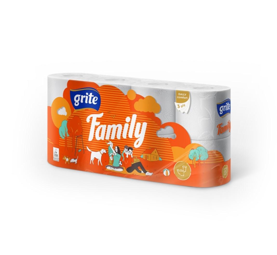 Tualetes papīrs Grite Family8 ruļļi3 slāņi150 loksnes18,75m