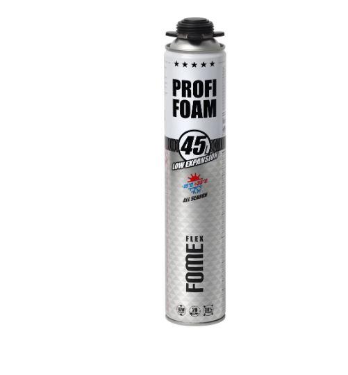 FOME FLEX Mini Foam, 230ml – poliuretāna montāžas putas arpaaugstinātu iznākumu. Var lietot plašā temperatūrudiapazonā no -10°C līdz +30°C. Izmanto durvju kārbumontāžai, spraugu siltumizolācijai starp logu rāmi un mūri,ūdensvada cauruļu izolācijai, vannu un dušas kabīņuizolācijai un skaņas slāpēšanai, mūrējumu plaisuaizpildīšanai u.c., jumiķu darbos dakstiņu pielīmēšanai unsiltumizolācijai. Putas kavē pelējumu un sēnīšu rašanos.