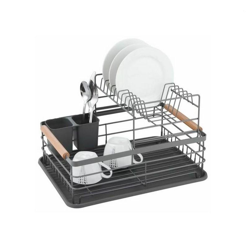 24,75 €Divstāvu trauku žāvēšanas statīvs,tērauds-plastmasa-koks, pelēksKvalitatīvs, pulverkrāsots metāla rāmis.Izturīga metāla konstrukcija.Izmēri: 43x32x27 cm.