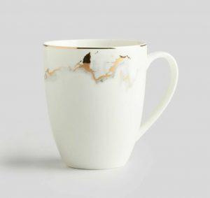 Krūze MARBERIS balta ar zeltu 9x12x10,5cm